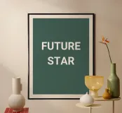 Deze minimalistische houten lijst kunstafdruk met de krachtige tekst 'FUTURE STAR' brengt motivatie en stijl in elke ruimte. Perfect voor moderne woonkamers, kantoren of tienerkamers die een inspirerende sfeer verdienen. Gemaakt van hoogwaardig, duurzaam materiaal in Europa voor langdurige kwaliteit.