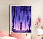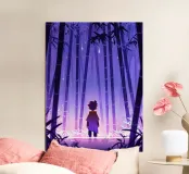 Jongen die alleen in een bamboebos staat Lofi Art poster met kunststof frame