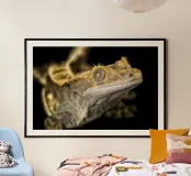 Dompel jezelf onder in de betoverende wereld van de gekko met deze prachtige close-up poster, die elk ingewikkeld detail vastlegt-van de expressieve ogen van de gekko tot de kenmerkende "wimper" richels die dit dier zijn unieke charme geven. Tegen een strakke achtergrond brengt deze afbeelding de levendige texturen en kleuren naar voren, waardoor het een opvallend stuk is voor elke ruimte.