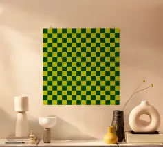 Breng gedurfde verfrissende energie in je interieur met deze groovy retro sapgroene dambordprint. De golvende, handgetekende ruitjes stralen een speelse vintage vibe uit terwijl ze toch minimalistisch en modern blijven. Perfect voor eclectische interieurs, retro wanddecoratie of iedereen die houdt van levendige patroonkunst met een tijdloze jaren 70 uitstraling.
