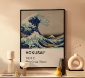 Het beroemde schilderij The Great Wave at Kanagawa van Katsushika Hokusai in een nieuw jasje gestoken als stijlvolle Pantone kleurenkaart.