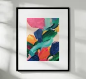 Deze moderne houten lijsten kunstprint 'Intertwined' van Luca is perfect voor een eigentijdse uitstraling in elke kamer. Met zijn levendige kleuren en abstracte ontwerp voegt het een speelse dynamiek toe aan uw interieur. Ideaal als decoratie voor de woonkamer, slaapkamer of kantoor.