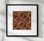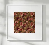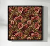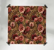 Een fel en vrouwelijk patroon dat klassieke luipaardprintvlekken combineert met vintage rozen in koraalroze, bordeauxrood en paars. Dit gedurfde ontwerp combineert wilde dierenprint met romantische bloemen voor een edgy maar elegante esthetiek. Perfect voor dierenprintliefhebbers, liefhebbers van gedurfde patronen, fans van gemengde prints en iedereen die graag felle luipaardvlekken combineert met zachte vintage rozen voor een unieke, opvallende stijl.