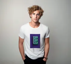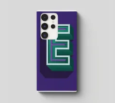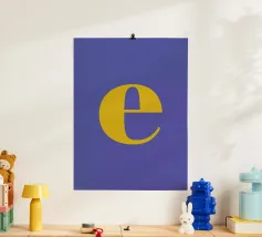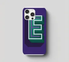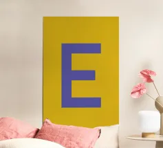 Hoofdletter "E" in reliëf met structuur en details op een blauwe achtergrond.
