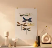 Verfraai je kamer met deze betoverende foto van libellen, waarop deze delicate wezens in al hun glorie te zien zijn. Libellen staan bekend om hun prachtige iriserende vleugels en sierlijke bewegingen en symboliseren transformatie en aanpassingsvermogen in de natuur. Dit prachtige beeld vangt de ingewikkelde details en levendige kleuren van deze prachtige insecten, waardoor het een perfecte aanvulling is voor natuurliefhebbers, entomologie liefhebbers, of iedereen die op zoek is naar een vleugje natuurlijke schoonheid in hun interieur.