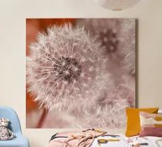 Een delicate paardenbloem in zacht licht, vastgelegd in warme, rustige tinten. Het motief staat voor lichtheid, vergankelijkheid en stille schoonheid.