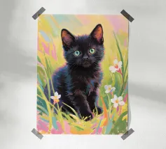 Diese schwarze Katze im Darth-Vader-Helm verbindet Popkultur mit klassischer Malerei: Der düstere Helm trifft auf sanft gemalte Blumen und zarten Pinselduktus – eine ungewöhnliche Mischung aus Bedrohung und Idylle. Ein humorvolles, stilvolles Statement für alle, die Katzen lieben und die dunkle Seite kennen. Perfekt für moderne Wohnräume mit Augenzwinkern.