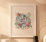 We gebruiken jouw ontwerp - in met de hand gemaakte lijsten. Klaar om op te hangen.