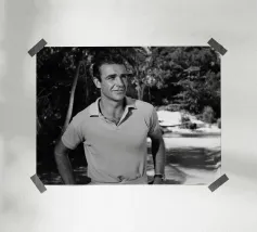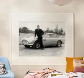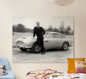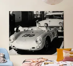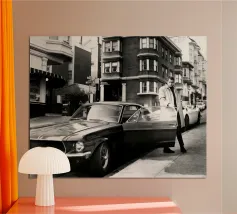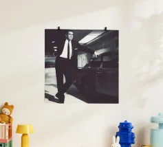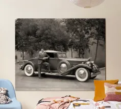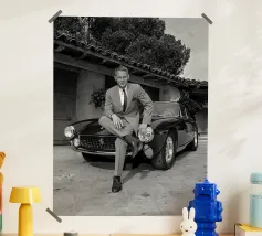 Man met oldtimer poster