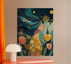 Breng kleur en stijl in je huis met deze prachtige houten gefranjerde kunstprint genaamd "Mer" van Kris Tate. Dit unieke stuk artwork toont een betoverende zeemeermin te midden van een levendig bloemenmotief, perfect voor het opvrolijken van een woonkamer, slaapkamer of zelfs een kinderkamer. Met zijn retro vibe en speelse kleuren, is deze kunstprint niet alleen een blikvanger, maar ook een gespreksonderwerp. Ideaal voor liefhebbers van kunst, zeemeerminnen of retro designs. Voeg een vleugje fantasie toe aan je ruimte met deze charmante print!