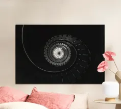 Breng moderne elegantie in je interieur met deze stijlvolle houten lijst met de afbeelding van een moderne trap. De zwart-wit uitstraling geeft een unieke en strakke sfeer aan elke kamer. Perfect voor een woonkamer, kantoor, of hal. Deze art print is niet alleen een visueel hoogtepunt, maar ook een geweldige manier om je persoonlijke smaak te tonen. Het kunstwerk past goed in diverse interieurstijlen, van minimalistisch tot industrieel. Met een formaat van 15 x 20 cm is hij perfect voor een keurige muurpresentatie of als onderdeel van een gallery wall. Laat je huis sprankelen met deze chic ontworpen wanddecoratie!