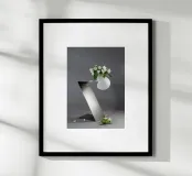 "Precaire balans" conceptuele kunstdruk! Deze prachtige en meeslepende foto toont een gladde, ronde witte vaas met een levendige groene varen, dramatisch uitgebalanceerd op een zwaar, gekanteld donker geometrisch blok. Het hoge contrast en de spanning tussen organische natuur en industriële geometrie creëren een krachtig statement over evenwicht en kwetsbaarheid. Perfecte muurkunst voor moderne, minimalistische en hedendaagse ruimtes. Ideaal voor een woonkamer, kantoor of woning in Scandinavische stijl. Balans, Evenwicht, Conceptuele Kunst, Varen, Plant, Ronde Vaas, Geometrisch, Moderne Sculptuur, Minimalistisch, Con