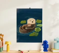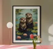 otters water lelies vijver reflectie waterplanten dierenportret natuur dieren bloemen paar-otters moerasgebied natuurlijke habitat flora fauna rustig-water wildlife ecosysteem bruinbont lelieblad