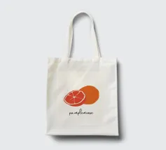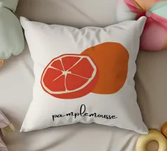 Tekening van een grapefruit met Franse tekst: Pamplemousse. Onder andere gegenereerd met AI (Canva).
