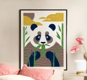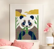Geniet van een levendige wildlife-illustratie met een panda die bamboe eet