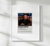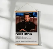 Voeg een vleugje stijl toe aan je woonkamer of kantoor met deze minimalistische houten lijst kunstprint van Patrick Dempsey. Perfect als decoratie of als uniek geschenk voor filmliefhebbers en fans van Grijze Anatomie.