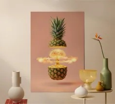 Breng een vleugje tropische stijl in je interieur met deze moderne houten gelevéerde kunstprint van een ananas. Perfect voor de woonkamer, slaapkamer of keuken, deze print voegt een vrolijke sfeer toe aan elke ruimte.