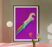 Breng je muren tot leven met de unieke 'Pixel Unicorn' kunstprint van Róbert Farkas. Dit kleurrijke en speelse ontwerp, geïnspireerd op retro pixel art, is perfect om een vrolijke en creatieve sfeer in je huis te creëren. Ideaal voor kinderkamers, speelruimtes of als eye-catcher in de woonkamer. Het felle kleurenpalet met een witte eenhoorn die door een regenboog van kleur zweeft, maakt deze print een geweldige keuze voor iedereen die houdt van fantasie en creativiteit. Gemaakt van hoogwaardige materialen en een stijlvolle houten lijst, zodat je het direct kunt ophangen. Geef je ruimte een vrolijke touch met deze opvallende decoratie!