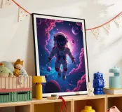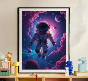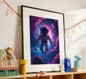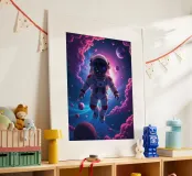 Psychedelische astronaut zwevend in een neon sterrenstelsel poster