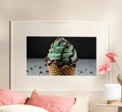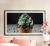 Romig mint-chocoladeschilpadijs geserveerd in een wafelhoorntje poster