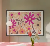 Roze Matisse Groovy Bloementuin poster met houten frame