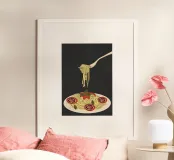 Breng een vleugje eenvoud en smaak in je eetruimte met dit minimalistische Spaghetti poster. Perfect voor liefhebbers van Italiaanse keuken, dit kunstwerk voegt karakter toe aan elke keuken of eetkamer.