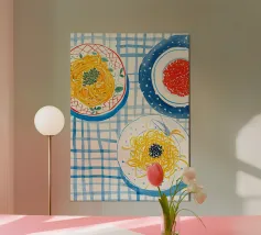 Spaghetti geruite tafel poster