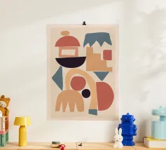 Ein modernes Poster im Stil abstrakter Geometrie. Sanfte Farben und harmonisch angeordnete Formen verleihen dem Motiv eine ruhige, ausgeglichene Wirkung – perfekt für Wohn- oder Arbeitsräume mit klarer Ästhetik.