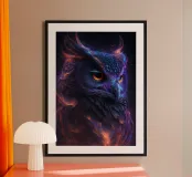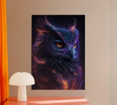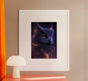 Dit opvallende houten framed art print van een galactische uil brengt een dromerige sfeer in elke ruimte. Perfect voor de slaapkamer of studeerkamer, voegt het een vleugje magie toe aan je interieur. Een uniek cadeau voor natuurliefhebbers en trendy decoratie voor moderne woningen.