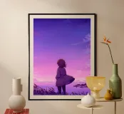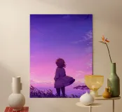 Een meisje aan de oceaan in de avond Lofi Art poster