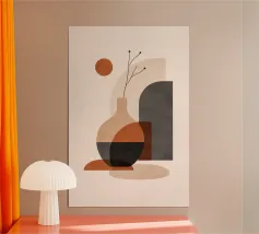 vaas aardewerk silhouet twee vazen overlappende vormen geometrische vormen organische vormen aardetinten decoratieve-kunst woningdecor abstracte-vormen negatieve-ruimte modulair-ontwerp bruin oranje schaduw inrichting interieur-elementen eenvoudige-vormen plat-ontwerp