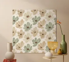 Een vloeiende en expressieve bloemencompositie van saliegroen, diep indigo en gedempt taupe. Losse aquarel penseelstreken suggereren een overwoekerd botanisch veld bekeken door een zachte, dromerige sluier. Modern maar toch organisch, dit patroon roept een gevoel van rustige beweging en natuurlijk ritme op.