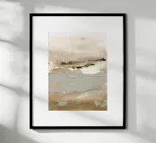 Dit abstracte landschap van Iris Lehnhardt is een meesterlijke combinatie van gestuele penseelstreken, subtiele lijnen en gelaagdheid, een aards palet van beige en zachte grijstinten die een gevoel van uitgestrektheid en verlangen creëren. Als we naar dit geabstraheerde landschap kijken, wordt onze verbeelding geprikkeld door de unieke visie van de kunstenaar - om ons mee te nemen naar een wereld waar de tijd stilstaat en alles wat bestaat bestaat uit delicate nuances van aardse kleurtonen.