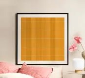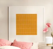A bright and uplifting white rectangular grid on a warm yellow backdrop. The geometric layout brings a sense of order while the vibrant color adds energy and a cheerful modern feel. Ideal for eclectic, contemporary, and creative spaces needing a fresh visual boost.