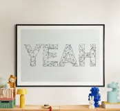 We gebruiken jouw ontwerp - in met de hand gemaakte lijsten. Klaar om op te hangen.