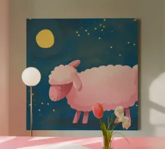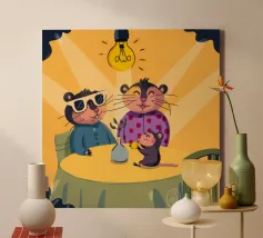 Dit kunstwerk toont een chagrijnige wolk met een gedachtewolkje met daarin een vogel en een beer. Het humoristische en fantasierijke tafereel speelt zich af tegen een zachtblauwe achtergrond.