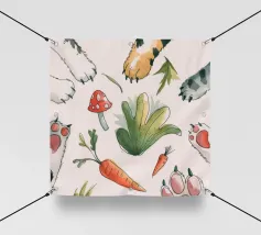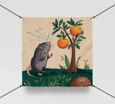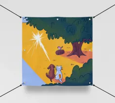 Dit kunstwerk toont een chagrijnige wolk met een gedachtewolkje met daarin een vogel en een beer. Het humoristische en fantasierijke tafereel speelt zich af tegen een zachtblauwe achtergrond.