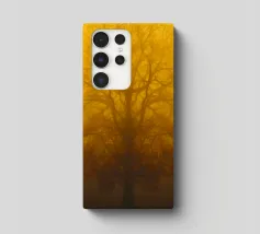 Een opvallend silhouet van een boom met gloeiende takken, waardoor een betoverend, abstract ontwerp ontstaat dat geschikt is voor behang. De nachtelijke achtergrond versterkt het lichtgevende effect.