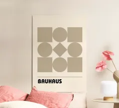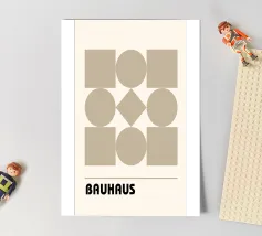 Dompel jezelf onder in de basisprincipes van modern design met deze opvallende, op Bauhaus geïnspireerde kunstprint. Het kunstwerk bestaat uit een nauwkeurig raster van minimalistische geometrische vormen - vierkanten, cirkels en een centrale ruit - weergegeven in een verfijnde, beige tint. Dit ontwerp belichaamt perfect de abstracte eenvoud en functionele schoonheid die de iconische Bauhaus-beweging, opgericht in 1919, definieerde. Geproduceerd met een indrukwekkende resolutie van 7000 x 5000 pixels en 300 dpi, zorgt deze hoogwaardige digitale kunst ervoor dat elke scherpe lijn en subtiele tint wordt weergegeven met uitzonderlijke precisie, waardoor het een id