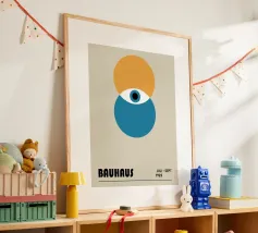 Dit grafisch heldere, abstracte Bauhaus-motief toont een ritmisch driehoek- en vierkantpatroon in krachtig rood op een warme crèmekleurige achtergrond. De strikt geometrische opstelling creëert een spannende balans van dynamiek en orde en doet denken aan klassieke Bauhaus en mid-century designprincipes. Door het bewuste gebruik van contrast en herhaling oogt het patroon tegelijkertijd modern, tijdloos en architectonisch. Het gereduceerde kleurenpalet geeft het ontwerp rust en kracht zonder expressie te verliezen. Ideaal als muurschildering voor woonkamers, designposters, moderne wandkunst.