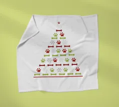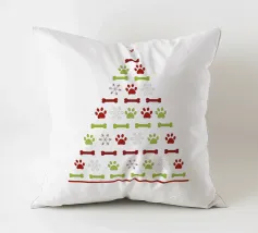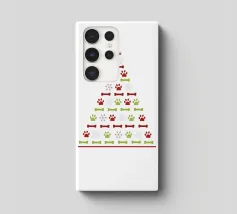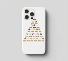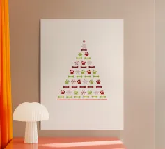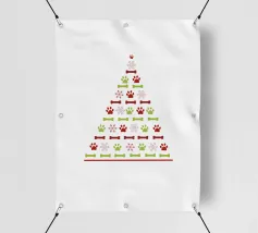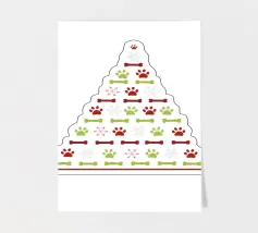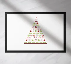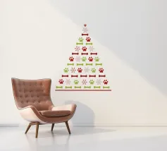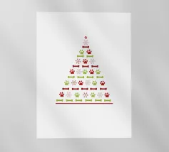 Dennenboom gemaakt van pootafdrukken. Kerstmis Gelukkig nieuwjaarsontwerp pootafdrukken en de wenskaartontwerp van sneeuwvlokkenachtergrond