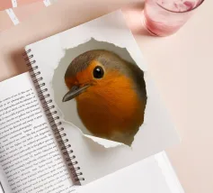 Voeg een vleugje nieuwsgierigheid en elegantie toe aan je muren met dit opvallende doorkijkkunstwerk van een spreeuw. Met een gedetailleerde, glanzend gevederde vogel die door een gescheurd papier-effect tevoorschijn komt, combineert dit ontwerp realisme met modern minimalisme. De donkere veren met gouden spikkels vormen een fel contrast tegen de strakke witte achtergrond, waardoor het perfect is voor eigentijdse interieurs, kantoorinrichtingen, kamers met een natuurthema of als uniek cadeau voor vogelliefhebbers. Dit speelse en toch geraffineerde kunstwerk brengt stijl, persoonlijkheid en gespreksstof in elke ruimte.