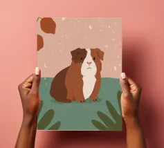 Een fascinerende kleurrijke illustratie van een vriendelijk dier, tot leven gebracht met ingewikkelde details en felle kleuren. Dit kunstwerk laat de unieke persoonlijkheid en beweging van het schattige onderwerp zien.