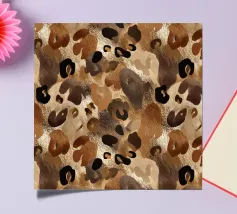 Prachtig, handgetekend patroon met luipaardvlekken in drie verschillende kleuren. Warm chocoladebruin, gecombineerd met een zachte, middentint rosé en een dunnere tint rosé. Safari-stijl in de herfst. Licht gestructureerd. Een zeer stijlvol luipaardpatroon dat perfect is voor de herfst in deze combinatie van chocoladebruin en rosé.