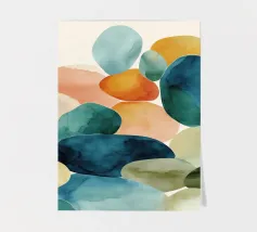 This minimalist watercolor pattern features softly scattered organic pebble shapes in warm beige and muted olive green tones. The hand-painted texture and airy white background create a calm, modern aesthetic inspired by nature and Scandinavian simplicity. Perfect for contemporary interiors, this design adds subtle character without visual clutter. Ideal for living rooms, bedrooms, offices, and stylish gallery walls seeking a balanced, natural look