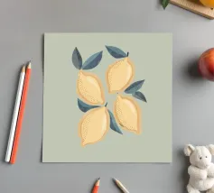 Een grafisch patroon in pop-artstijl van sinaasappelschijfjes tegen een donkerblauwe achtergrond. De compositie is modern, levendig en een fris, pittig en stijlvol ontwerp.