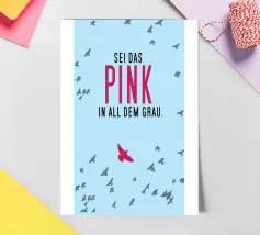 Of het nu lente, zomer of het grijze leven van alledag is - roze werkt altijd! In rijk frambozenrood schittert deze vrolijke slogan op een roze achtergrond en brengt meteen een goed humeur op elke muur. De duidelijke typografie in de linkerbovenhoek maakt een zelfverzekerd, stijlvol statement - gedurfd, charmant en absoluut tijdloos. Perfect voor iedereen die van kleur houdt, moed toont en met een twinkeling in de ogen door het leven gaat. Een highlight voor de keuken, hal of favoriete plek met positieve energie.