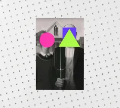 Collage met analoge en digitale ontwerptools in de esthetiek van een modetijdschrift.