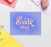 Break Rules-letters in elegante blauwe tinten met een rijk structuureffectharmonye