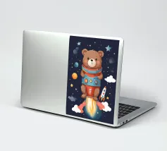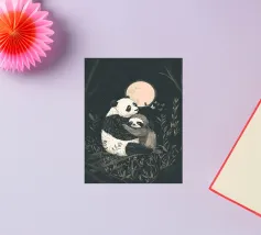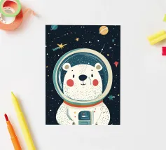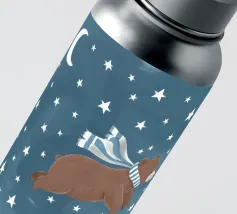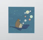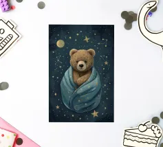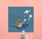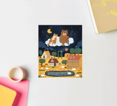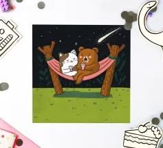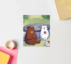 Een speelse illustratie van twee beren die bellen blazen in de ruimte die plezier en verwondering toevoegt aan elk decor of kleding. Perfect voor dromers van alle leeftijden.